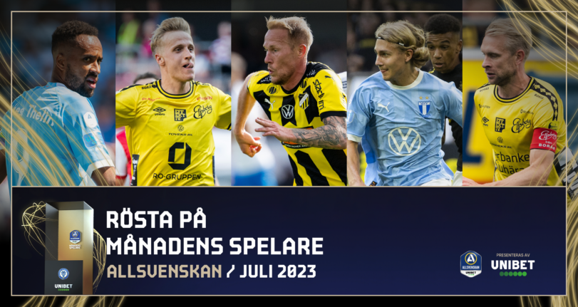Fem spelare från Malmö FF, IF Elfsborg och BK Häcken är nominerade när julis bästa spelare ska utses.